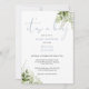 En elegant, stilfull inbjudan till bebisfirande med elegant dammig blå typografi och vacker botanisk grönska. Designad av Thisisnotme©