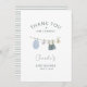 Säg tack med stil med detta charmiga och minimalistiska tackkort för baby shower! Med en ren vit bakgrund framhäver denna design en delikat akvarellklädstreck dekorerad med söta baby boy-outfits,