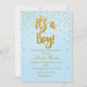 DET ÄR EN POJKE Ljusblå och guld Konfetti Inbjudan.