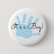 Låt världen veta att du just hade nyfödd bebis pojke! Knapp för handavtryck av vit och blå baby.