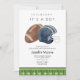Det är en pojke som rör vid fotbollsbabyduschen inbjudningar
