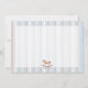 En baby shower tackar dig att card som är en fröjd som ska överföras och mottas. Presentera blått, görar randig vit och bruntet, och en medaljong med en vagga häst och "tackar dig" banret.