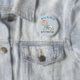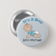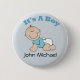 Anpassa den här blå knappen med baby namn. Knappen har en krympande baby i en blöjor och t-shirt. En pojke är skriven på toppen. Underbar för babydusch party favors