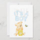 Bekvämt typografi, "Det är en pojke" babyduschdesign med en söt nalle med en tunna honung som tittar på ett sött honungsbi. Roligtens blå, lettrerade typografi är upptill med söta strängar och riva ner. Blåa blommigtar och mallar som skapar din egen inbjudan på baksidan. *OBS! Kontrollera om det finns något alternativ för digital hämtning i samlingen eller i lagret!