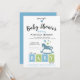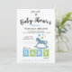 Cute pojke duschinbjudan med en roterande häst silhuett i blått, små hjärtan i grönt och blått och barnkuber i grönt och blått. Glatt och snyggt babyduschutformning. Enkel att anpassa genom att ersätta texten med din egen.