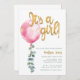 Det är en Rosa Balloon Baby Shower & Guld Script Inbjudningar