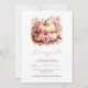 Den här söta babyduschinbjudan innehåller en vattenfärgsbild av en grupp pumpor i pastellskuggor, omgiven av rosa blommor. Orden "Det är en flicka!" visas i handskript för elegant rosa. Anpassa texten med namn i det mamma som ska användas i det rosa skriptet och detaljerna i det kol-grått sans serif-teckensnittet på en vit bakgrund.