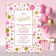 En rosa och guld-stjärnor, och prickar, som en gigantisk konetti, en inbjudan till babydusch.