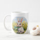 Det här är en mugg med en söt kanin sitta på den. Ha en lycklig dag.