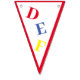 Ord, "Det är en flicka!" i ljust, rött brev mot en vit bakgrund med rött gräns. Alfabet brev visas i primärt färg på första och andra flaggorna. Flaggor som separerar ord är rött. Designad för samordning med "ABC Baby Shower Collection". Han kommer också i blått för pojken.