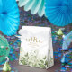 En elegant presentask för Det är en tjej-babykalas med lövverk och chic guldtypografi. Du kan anpassa med ditt eget tackmeddelande under locket. Ett perfekt sätt att tacka dina gäster! Designad av Thisisnotme©