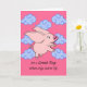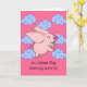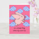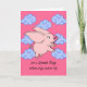 Det är en Underbar dag när Grisar kommer till Fly, ett pappert hälsningskort för att önska någon en trevlig dag. Cute gris med stort öron flyger genom ett rosa himmel fyllt med ljusblå, ljusblå, brunaktiga moln. Ha en trevlig dag i hälsning. Art, bild och versell copyright © Shoaff Ballanger Studios.