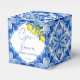 Det är Amore Blue Maiolica tiles Citons vintage Italienska möhippan personlig mongram bonboniere favärde box, Mediterranean themed möhippa citrus möhippa candy favbox