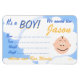 anpassa din spädbarn-annonsmagnet genom att lägga till namn, födelseinformation, bild och namn vid grund. Du kan också ändra teckensnitt och färg. Vilket roligt sätt att meddela hans ankomst!