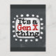 "Det är A Gen X Sak" är en söt textdesign i grått med svart och röd text, tillsammans med en vit accentform och vita texturerade vita punkter runt den.