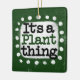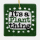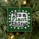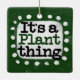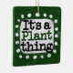 "Det är A Plant Sak" är en söt textdesign i grönt med svart och röd text, tillsammans med en vit accentform och vita texturerade vita prickar runt den.