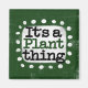 "Det är A Plant Sak" är en söt textdesign i grönt med svart och röd text, tillsammans med en vit accentform och vita texturerade vita prickar runt den.