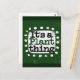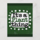 "Det är A Plant Sak" är en söt textdesign i grönt med svart och röd text, tillsammans med en vit accentform och vita texturerade vita prickar runt den.