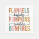 Den här färglösa och färglösa roligten har en lista över höstfavoriter, inklusive "Flannels", "Hayrides", "Pumpkins", "Sweaters" och "Bonfire". Texten presenteras i ett fet, versalt typsnitt där varje ord fylls med en annan varm, god nyans, som sträcker sig från mjuka nyp och orangar till muterade gröntar och blues - som perfekt fångar säsongens mysiga och pulserande anda. "Hayriderna" och "svettarna" i ord är skrivna i ett blomstrande skript, som tillför lite elegans och skapar en fin kontrast till det fet blocket brev. Dekorativ blomstrar ram i skripttexten, vilket ökar den allmänna charmen och appellen. Den här utformningen är perfekt för fall.