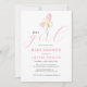 Det är en tjej, blommor och baby i guld, inbjudan till babydusch.