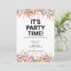 Det är fest födelsedagsinbjudningskort, Färgglad inbjudan, Konfetti-fest inbjudan
