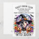 Inbjudan till bokklubb med grafik som lyder "It's Witch Season" föreställande en halv häxa och halvt skelett iförd häxhatt omgiven av pumpor, blommor, fladdermöss och en måne i bakgrunden. I ljust lila, orange och gröna färger. Underbar inbjudan att skicka ut till din nästa tjejkväll, bokklubbsmöte, halloweenfest hemma, på jobbet eller möte. Texten kan anpassas. Sök efter samlingen "It's Witch Season" för matchande festmaterial.