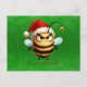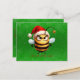 En söt lycklig-bin som håller presenter i det är vingar, på en grönt snöflingerbakgrund. "Det är inte så illa!" text på framsidan med julmeddelandet på baksidan, som också är en grönt snöflammande bakgrund.
