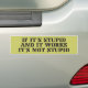 Om den är dum, och den fungerar, är den inte dum, proklamerar stencilera på denna bildekal som inspireras av militära versionMurphy'sens lagar.