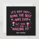 Fira uppskattning av hustrun med detta roliga och hjärtliga meddelande: "Det är inte lätt att vara den bästa hustrun någonsin, men här är jag och klara det!" Perfekt för Alla hjärtans dag, årsdagar, födelsedagar eller någon annan tillfälle för att hedra hustrur som klara det. Visa din kärlek med detta erkännande av din hustru!