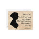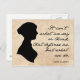 "Det är inte vad vi säger eller Tänka som bestämmer oss, men vad vi gör" Jane Austen citerar på ett vykort. Har vintage papper bakgrund, en Jane Austen silhouette och handskrivet citat från Sense och Sensibility.