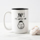 Hand-dragen, enkel ansikte med "Yay - Det är kaffetid"-ordalydelsen - rolig och snabb.