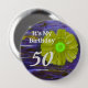 Min födelsedag Lila/ Grönt Flower Birthday 10 cm Round Badge...Ålder och födelsedag Hälsning kan vara personlig ........Fler produkter tillgängliga - https://www.zazzle.co.uk/store/limitlesscreativity