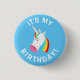 Illustration av en söt unicorn med texten: "Det är min födelsedag!"