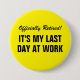 Officiellt pensionerad Det är min sista dag på jobbet, roligt knapp för anställda, medarbetare, chef, vän, make/maka, partner, assistent, medarbetare, medarbetare, medarbetare, kompanjon, kompis, team, kompis, chef osv. Personlig pension-knappar med anpassningsbar humoristisk text eller farewell-citat. Coola-stift för pensionerad kollega. Modern typografi. Finns i gult eller anpassningsbar färg. Säg adjö i stil och säg till alla att du lämnar företaget för pension. Adjö, Hej Pension! Lämpligt för kvinnor och manar.