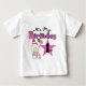 Första födelsedagspressen T-tröjor, kroppsdräkter, kort, klisterlappar, magneter, säckar och andra första födelsedagskläder och presenter med flicka i en rosa skjorta, blöjor och party hatt med födelsedagspenslar!