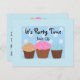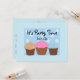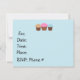En perfekt för inbjudan till roligt och snyggt för vuxnor eller barns födelsedag party. Blå bakgrund med blått och vitt polka dots och utsökta frostade muffinsar med sprinkler.