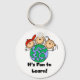 Tre barn i stick figur omger en global värld och texten lyder "Det är Roligt att lära sig!" på skolmatade T-tröjor, kort, mugg, klistermärken, knappar och andra redskap!
