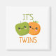 Söta orange och äppelfigurer med texten: "Det är tvillingar".