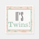 Fira att du kommer med den här festliga babyduschen party pappra servetter. Den här designen innehåller texten "Det är Twillingar!" i färg av svart och jade grönt med en blommigt ladybug mönster