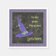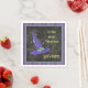 En roligt fyrkantig party-cocktailnapkin med flytande lila och tealblåsad häxhatt som säger "Det är den vackra årstiden, Låt oss Party" på en mörk kolsvart bakgrund med tealblått gräns. All text är redigerbar.