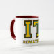 DET avdelningsmugg. Om du är i informationsteknikavdelningen, kan du visa det av med detta DEN Dept.kaffemuggen. Naturligtvis kan du sätta tea i den. Eller varm kakao. Eller sodavatten. Designen är en stilsort som ser den lika högskolan och sportar. En tjock seriffstilsort, yaen vet inte. Brev är guld- gult med en tunn krickagräns och en mer tjock brun gräns. En rolig geekkaffemugg.
