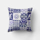Härligt kudde med blått som är traditionella, portugis belägger med tegel mönster - Azulejos.