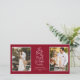 Spelande skript: "Det bästa är ännu till kom! (Förhoppningsvis)", roligt citat, helgdag-fotokort i rött. Skrapbok stil foto ramar och dockor och rand mönster.