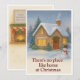 Fira säsongens värme med den här charmerande julkortsdesignen. På framsidan finns en stuga som är täckt av snö med guldfärgat ljus, en frisk andedräkt på dörren och en glad gäst vid snögubbe hälsning. Inuti, en mjukt målad kamerscen med hängande lager och utrymme för ett personligt familjefoto, får du en hjärtfull, personlig beröring. Det medföljande budskapet lyder: "Må hemmets värme, familjens glädje och säsongens magi fylla ditt hjärta denna jul och alltid." Perfekt för att skicka kärlek, nostalgi och helgdag till vänner och familj nära och långt borta.