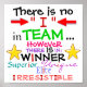 Ja, jag förstår, det krävs att alla samlas som ett team för att få sak att arbeta i de flesta caseser. HoWeVeR ... ett underbart team har individer som specialiserar sig på olika områden och för med sig expertisen till bord. Personligen har jag ett problem sitta i möten och utbildningssessioner som inte på något sätt gäller mitt eget expertområde, men som TEAM krävs detta ofta, ja? Jag sitter där och tänka av ett vinnande fotbollslag och tänka om vilken katastrof det skulle vara om de gjorde samma sak. Bör inte kvartersbacken träna förbi i stället för att hantera? Du kan se hur mycket jag får ut av några TEAM-sessioner.. Jag tar av min tvål. Det ursprungliga citatet "Det finns ingen i TEAM, men det finns i WIN" har tillskrivits Michael Jordan, men ändå kunde jag inte hitta någon bestämd källa att erkänna. JA!