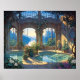 Ett dolt orangeri fyllt med frodig grönska och mjukt, gyllene ljus öppnar sig mot lugna vatten bortom. Eleganta valv och glaspaneler inramar en fridfull damm omgiven av blommande växter och slingrande vinrankor, och skapar en lugn och inbjudande tillflykt. Samspelet mellan ljus, vatten och lövverk frammanar en känsla av tystnad och tillflykt, där natur och arkitektur smälter samman i en harmonisk, drömlik miljö.