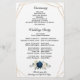bröllopsprogram för marin blå blommigt i mörk med elegant av marinblått, royal blått, vitt, guld, champagne elfenben, färg ro, vattenstånd, ranunkulus, peony, blomknoppar och sage grönt eucalyptus löv och elegant vattenfärg med runda glitter neutralt ram. Kontakta mig om du behöver hjälp med anpassning eller om du behöver någon annan produkt med den här designen.