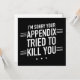 Jag är ledsen att ditt tillägg försökte Döda dig - ett humoristiskt och empatiskt budskap till alla som återhämtar sig från bihang. Säg till dem att du tänker på dem med den här tänkta designen.