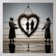 I denna slående visuella representation står två huggna figurer åtskilda, åtskilda av taggtråd, var och en av dem en fånge av sin egen tystnad och rädsla. Mellan dem hänger ett hjärta - en symbol för kärlek, som nu är innesluten i en webben av kontroll och manipulation. Trådtråden skär genom hjärtat, vilket ekar det sönderfallna förtroendets smärta och lidande. Denna bild spegel är en cykel av maktmissbruk, där urholkningen av egenvärdet och kvävandet av röster blomstrar. Precis som i giftiga förhållanden utnyttjar den politiska makten de sårbara genom att vidmakthålla en förintelsecykel. Bryt tystnaden. Utmana rädslan. Återkalla ditt värde.
