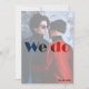 En höstbild i stadsområden, av den brud och den groom som ska vara, dekorerar det platta kortet. Det gör vackra bröllop-stationär i inbjudan till höst bröllop. Byt ut fotot så att det blir ditt och ändra fyllningen och texten i färg så att den stämmer överens. Om du vill ha fler produktdesignar och anpassningar kontaktar du oss https://kbmd3signs.com/contact/.
